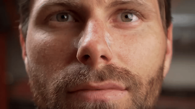Placera den magnetiska näsremsan direkt på huden ovanför näsan.