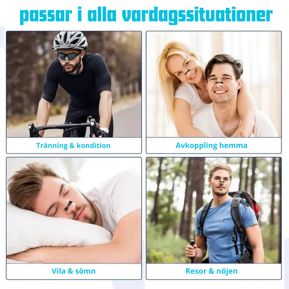 Den magnetiska näsremsan förbättrar syreintaget oavsett om du tränar, sover, reser eller slappnar av hemma.